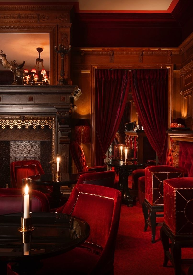 - Opulent decoration: velvet, silks, mirrors, and period paintings