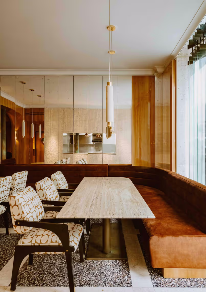 The restaurant's design reflects a contemporary aesthetic: