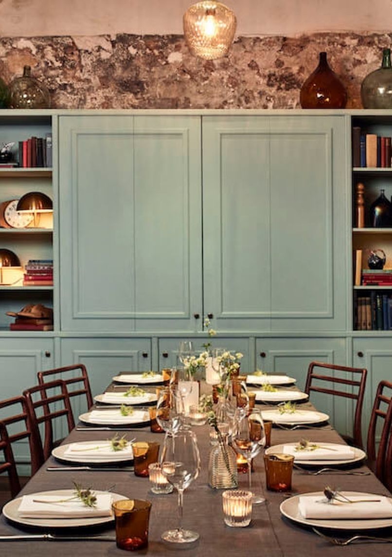 - Interior combines shabby chic, farmhouse, and Parisian styles