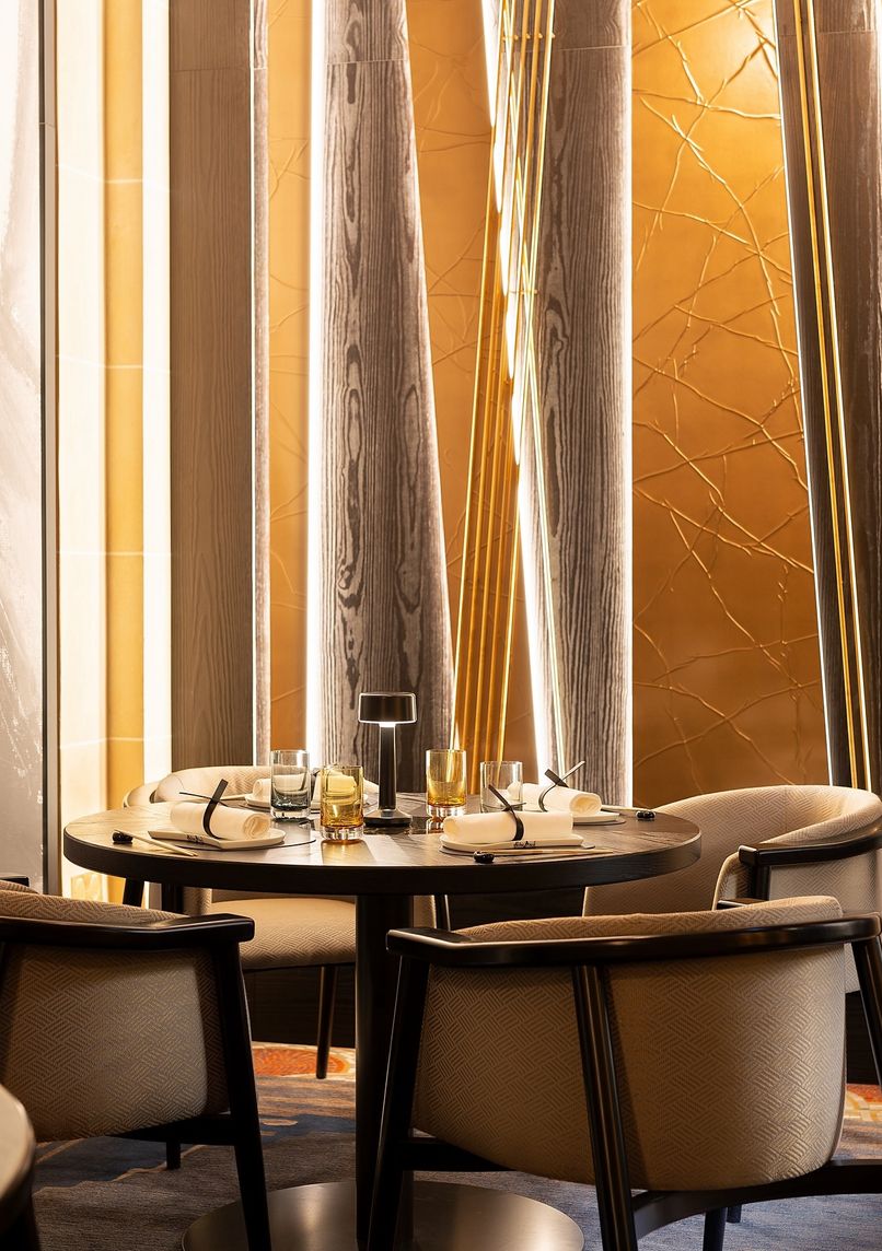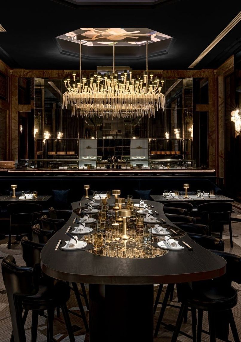 Restaurant fusion japonais gastronomique dans un hôtel de luxe parisien, mettant en vedette la cuisine innovante du chef étoilé Michelin Akira Back. Le décor mêle le japonisme des années 1920 au design minimaliste, présentant les œuvres de la mère du chef.