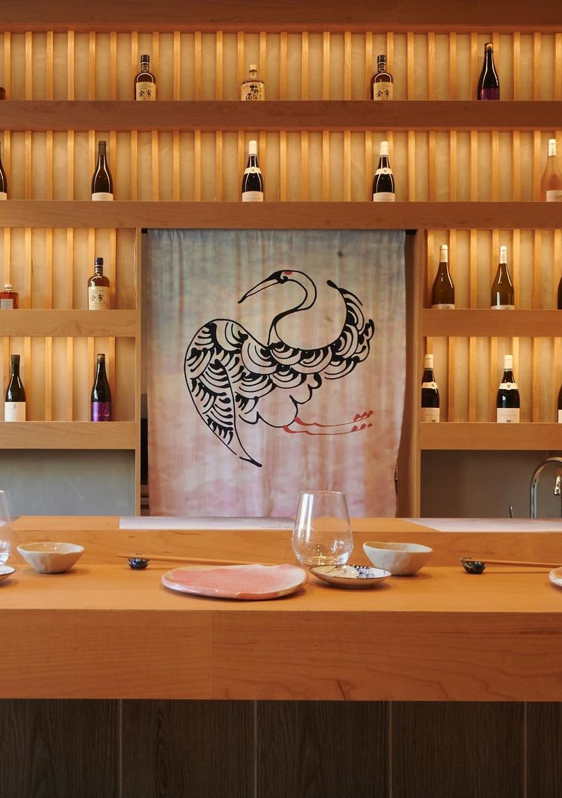 L'établissement combine l'atmosphère d'un bar à saké tokyoïte avec une touche parisienne, offrant aux convives une vue sur la préparation des plats au comptoir.